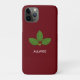 Modern green laurel leaves on crimson iPhone Case. Text can be personalised.
