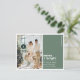 Modern Green “Merry + Bright” Christmas Photo Postcard