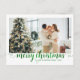 Modern Green Merry Christmas Heart Script Photo Holiday Postcard