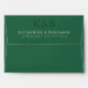 Personalise your wedding stationery with these minimalist wedding envelopes. Features your custom monogram initials, names and return address in elegant modern typography on green colour envelope.