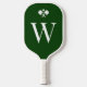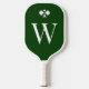For the pickleball player in your life. This modern, Hunter green, monogrammed, professional and minimalist pickleball paddle can be personalised to include your choice of monogram initial which will appear on the front and back. This Pickleball Paddle is ideal for a wide range of players and experience. Featuring a hand wrapped grip and fiberglass & polypropylene honeycomb core, this lightweight paddle offers excellent feel and ample power for the competitive player. The smooth hitting surface and conventional shape allows for a bigger sweet spot for more solid contact. This pickleball paddle could make the ideal gift for the pickleball loving man in your life, on any occasion.