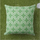Stylish pillow features a modern decorative Moroccan quatrefoil pattern in white. Customise the green background to coordinate with your outdoor decor.