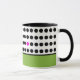 Enjoy your favourite hot beverage in style with this chic mug featuring playful black and pink polka dots with simple green colour blocking. This design is modern and minimalist, and it will appeal to a variety of people.