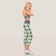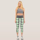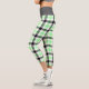 These capri leggings feature a modern plaid pattern in light green, black and white.