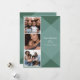 This simple three photo card features a modern sage green plaid print with white calligraphy script.