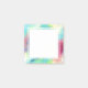 Sticky notes with a cool and stylish abstract design. Watercolors mix and mingle to create the illusion of a space image. Green with swirls of purple, yellow and light red blend together with a smattering of white dots and stars. An elegant artistic creation. A white square layered over top to write inside.