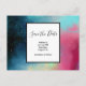 Save the date postcard with a cool and stylish abstract design. Watercolors mix and mingle to create the illusion of a space image. Green with swirls of purple, yellow and light red blend together with a smattering of white dots and stars. An elegant artistic creation.