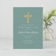 Modern Green Religious Cross Boy Confirmation Invitation.
