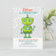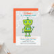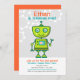 Green robot birthday invitations. Colours include green, orange, blue and grey.