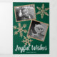 Create your own luxury tri-fold Christmas cards with this modern green rustic snowflake design and a photo collage that incorporates 5 of your favourite pictures into the design template. Set on a background of rich traditional green, the rustic wood style snowflakes in a faux pine wood texture pop on the deep green background for a touch of vintage charm. Joyful Wishes in bright white on the forest green front of these personalised holiday cards sets the stage for your five photos. Personalise the front with your name while inside are two more text templates in matching green fonts for you to customise with your holiday greetings. Upload your multi photos to these one of a kind modern green rustic custom Christmas cards for a Joyful holiday.