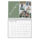 Modern Green Script 4 Photos Per Month Calendar. Organize your days and celebrate your memories by creating your own custom personalized photo collage calendar with 4 pictures per month (53 total photos including front and back cover photos). The design features stylish script typography on a sage green color block, both of which you can change the colors to coordinate with your pictures. Add special days like birthdays and anniversaries by adding text in EDIT and placing them on the right dates. Perfect as unique and meaningful gifts for grandparents, family members and friends, these designs turn your memories into practical keepsakes for every day of the year. CALENDAR OPTIONS: Shown in the SMALL 5.5x7"/page TWO-PAGE Size (total size 11x7"). Choose the calendar size, month grid layout, start date, wire color and more on the ordering page. ASSISTANCE: For help with design modification, contact the designer BEFORE ORDERING via the Zazzle Chat MESSAGE tab below or email makeitaboutyoustore@gmail.com.