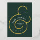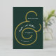 Modern Minimal Dark Green Script Big Ampersand Wedding Save the Date Gold Foil Invitation, fully customisable text elements for spouse's names, wedding date and location.
