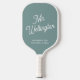 Modern Green Pickleball Paddle with the spouse's or grooms name in modern script font for a Pickleball wedding.