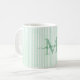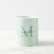 Start your morning in style with this personalised green striped coffee mug, designed to bring timeless charm to every sip. Featuring a soft green and white striped background, this elegant mug is customised with your monogram initial and full name in a graceful script font—creating a feminine, refined look that feels both classic and modern.