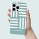 Modern Green Stripes White Custom Name Simple Chic Case-Mate iPhone Case