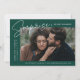 Share the news of your surprise engagement with these elegant photo engagement announcements. The design features the phrase "Surprise, we got engaged!" in a trendy white script and modern lettering on a dark green background. Your engagement photo is featured in the centre-right part of the design with your names and engagement date displayed on the left. Personalise the surprise engagement announcement by adding additional details below such as wedding city/state, wedding website, etc. The announcement reverses to display a dark green foliage pattern on a white background.