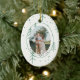 Modern Green Tree Family Photo Oval Holiday Ceramic Ornament