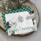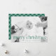 Celebrate the season with this modern holiday photo card featuring your favourite horizontal photo with “Merry Christmas” in bold green typography. Personalise with your family name and year for a chic, timeless look. The back showcases a coordinating green and white plaid pattern, adding festive charm to this minimalist Christmas card design.