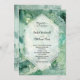 Elegant watercolor in shades of green from the palest jade to dark emerald with your wedding ceremony details in chic lettering in a white inset. A modern yet simple choice for any season wedding invitations. MATCHING items in our collection.