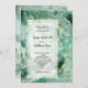 Elegant watercolor in shades of green from the palest jade to dark emerald with your wedding ceremony details in chic lettering in a white inset. A modern yet simple choice for any season wedding invitations. MATCHING items in our collection.
