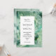 Elegant watercolor in shades of green from the palest jade to dark emerald with your wedding ceremony details in chic lettering in a white inset. A modern yet simple choice for any season wedding invitations. MATCHING items in our collection.