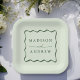 Add a stylish touch to your wedding reception, rehearsal dinner, engagement party, or wedding shower with these Modern Green Wavy Frame paper plates. The retro wedding paper plates display the couple's names in bold green lettering surrounded by a green wavy border contrasting with a light green background. The trendy wedding paper plates were designed to coordinate with our Modern Wavy Frame wedding collection.