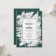 The vibrant green background adds a rich touch of colour while letting the white florals and sharp typography take centre stage. Ideal for tropical, botanical, or destination-themed weddings.