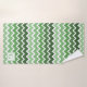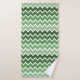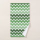 This bath towel features a horizontal zigzag lines pattern in shades of white and green colours, including a custom family initial letter design for personalisation.