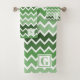 Modern Green White Zigzag Lines Monogram Bath Towel Set