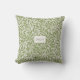Modern Green Willow Leaves Botanical Monogram Throw Pillow. Vintage William Morris Willow Leaves Botanical Pattern.