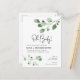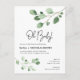 Whether you can't gather for a party due to coronavirus social distancing guidelines, or long distance family and friends are just too far away, this beautiful Baby Shower by Mail invitation will allow loved ones to celebrate your new baby from anywhere. The design features modern minimalist typography with simple stems of sage green eucalyptus leaves. The gender neutral design is perfect for baby boy or baby girl. Use the design tools to add your virtual baby shower details or customise to suit your event.