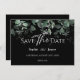 This modern greenery black wedding flat save the date design features easy mix and match coordinating styles in black and white with delicate greenery elements adding graceful flourish around simple sophisticated typography and lovely minimal calligraphy script. The watercolor eucalyptus and other botanical leaves arch beautifully throughout, with dark emerald fading in an ombre effect to light mint green - to add just enough of a classy touch of rustic nature to a neutral contemporary backdrop. This gorgeous collection would perfectly create an air of polished elegance for your formal or casual dream wedding or other special event. As with all of our designs, if you have any questions or special requests, please reach out.
