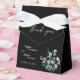 This modern greenery black wedding thank you favour box design features easy mix and match coordinating styles in black and white with delicate greenery elements adding graceful flourish around simple sophisticated typography and lovely minimal calligraphy script. The watercolor eucalyptus and other botanical leaves arch beautifully throughout, with dark emerald fading in an ombre effect to light mint green - to add just enough of a classy touch of rustic nature to a neutral contemporary backdrop. This gorgeous collection would perfectly create an air of polished elegance for your formal or casual dream wedding or other special event. As with all of our designs, if you have any questions or special requests, please reach out.