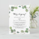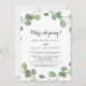 This modern greenery calligraphy elopement reception card is perfect for a rustic post elopement party. The design features hand-drawn botanical green eucalyptus branches and leaves.