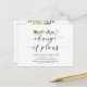 This is the modern summer greenery, in Black font, Wedding party invitation Rescheduled (Change of plans) postcard. It is the perfect and elegant way to make the reschedule announcement to your friends and family.