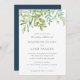 Modern Greenery Foliage Leaves Navy Wedding Invitation