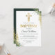 Modern Greenery Gold Cross Glitter Baptism Invitation