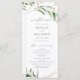 Rustic watercolor botanical foliage greenery design with faux gold foil leaves and geometric frame, with trendy script, simple and elegant, great wedding program for green and gold summer rustic wedding, spring botanical garden wedding.