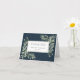 Elegant watercolor greenery leaves wedding thank you card. Featuring delicate watercolor leaves on a deep sea blue background framing your thank you message, family name and special date, set in elegant text. Designed by Thisisnotme©
