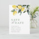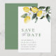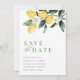 modern watercolor lemons and greenery save the date wedding card. The text and colours can be edited.