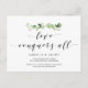 This is the modern summer greenery, in Black font, Wedding party invitation Rescheduled (Love conquers all) postcard. It is the perfect and elegant way to make the reschedule announcement to your friends and family.
