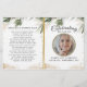 Customise this modern, elegant funeral program with your own photo and text to create a special tribute to your Beloved. An 'In Loving Memory' program featuring Floral Foliage botanical and gold accent memorial program. On the front cover is a photo of your loved one, their name, dates, the memorial venue, and the date of the event. On the inside is an obituary and order of service, and on the back is a thank you note and the venue of the