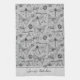 This Modern Grey and Black Chef's Kitchen Insect kitchen towel features an array of hand-drawn insects including butterflies, bees, ladybugs, grasshoppers, dragonflies, and more, Illustrated in black against a modern light grey background. Personalise with chef's name.