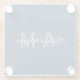 Modern Grey and Blue Couple's Monogram Glass Coaster