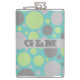 Modern Grey and Green Bubbles Monogram Hip Flask
