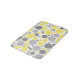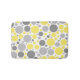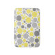 Modern pattern features large and small bubbles of yellow and shades of grey on white background