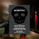 This scary, modern and cool design features a simple black skull on a dark grey background, for an adults Halloween party.