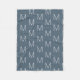 Modern grey blue and white custom monogram initial letter Fleece Blanket.