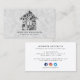 Modern trendy grey business card designed for a commercial or residential services for cleaning, housekeeper, maid service, or janitorial supplies. Design featuring of grey house icon and cleaning equipment icons inside it. Customise the front with two lines of custom text on a black background, and add your full contact details to the back and social media details. Trendy chic modern design.