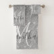 Modern Grey Glitter Sparkles Personalised Name Bath Towel Set